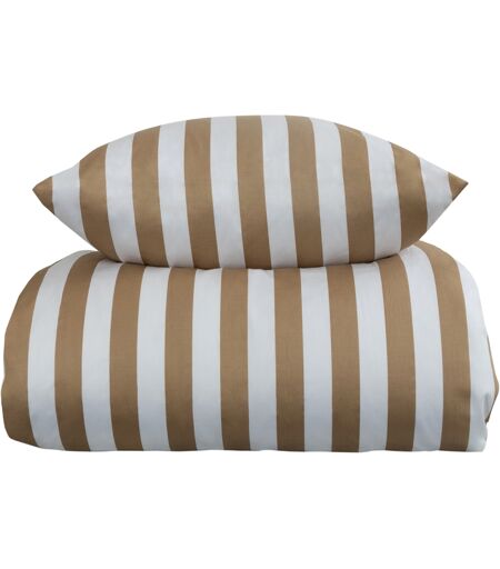 Borg Living Stribet sengetøj - 150x210 cm - Blødt bomuldssatin - Nordic Stripe - Sandfarvet og hvidt sengesæt