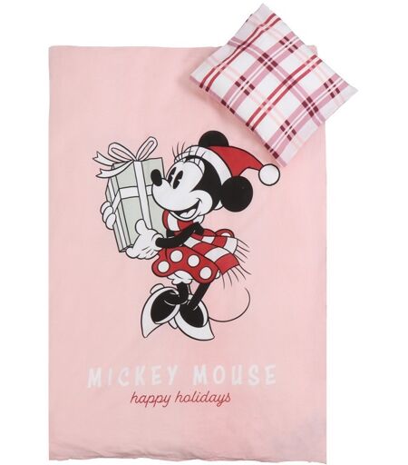 Licens Julesengetøj junior - 100x140cm - 100% blødt bomuld - Minnie Mouse med julegave og nissehue