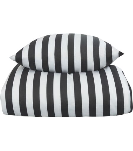 Borg Living Stribet sengetøj - 140x220 cm - Blødt bomuldssatin - Nordic Stripe - Mørkegråt og hvidt sengesæt
