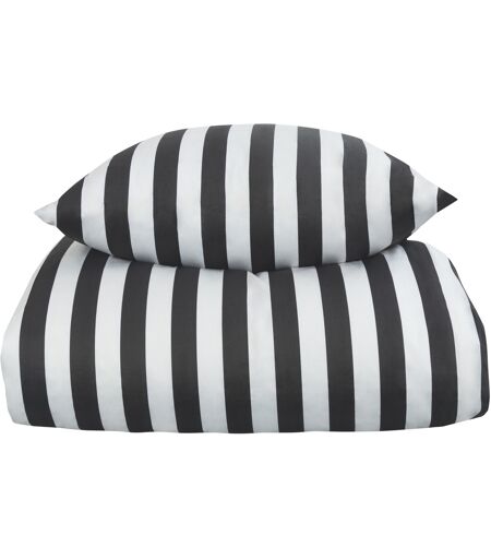 Borg Living Stribet sengetøj til dobbeltdyne - 200x200 cm - Blødt bomuldssatin - Nordic Stripe - Mørkegråt og hvidt sengesæt