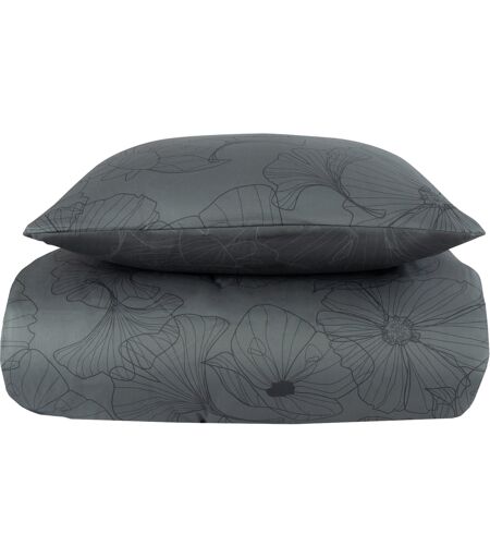 Borg Living Sengetøj dobbeltdyne - 200x200 cm - Vendbart design i 100% Bomuldssatin - Big Flower grå - Sengesæt fra By Night
