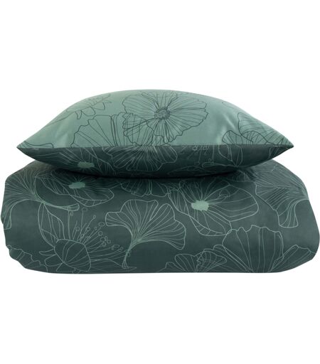 Borg Living Sengetøj 150x210 cm - Vendbart design i 100% Bomuldssatin - Big Flower grøn - Sengesæt fra By Night