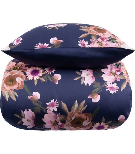 By Borg Blomstret sengetøj - 140x200 cm - Dark blue flower - 2 i 1 design - Sengesæt i 100% Bomuldssatin - Excellent