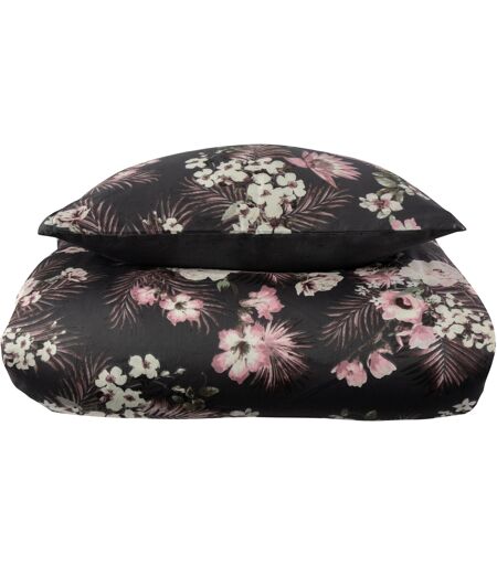 Borg Living Sengetøj dobbeltdyne - 200x200 cm - Vendbart design i 100% Bomuldssatin - Flowers & Dots grå - Sengesæt fra By Night