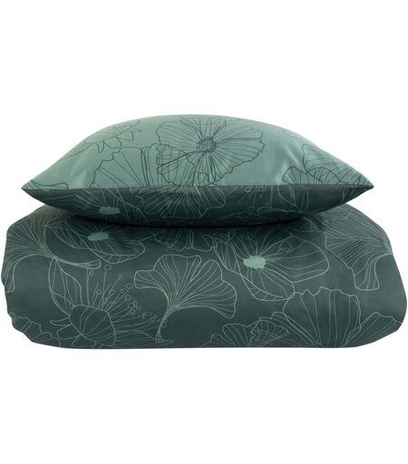 Borg Living Sengetøj king size - 240x220 cm - Vendbart design i 100% Bomuldssatin - Big Flower grøn - Sengesæt fra By Night