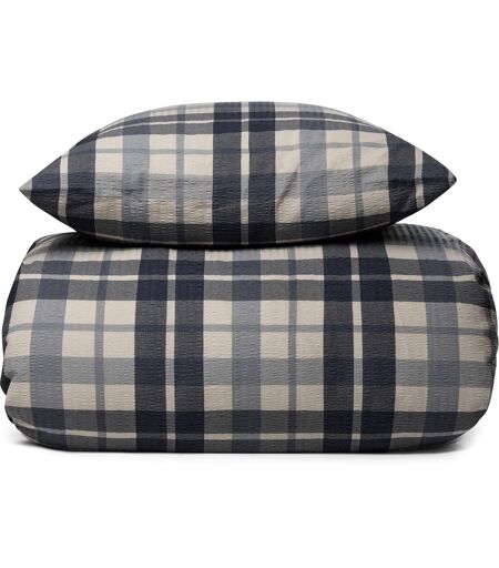 By Night Bæk og Bølge sengetøj 140x220 cm - Blåt ternet sengesæt - 100% bomuld - Krepp sengelinned -