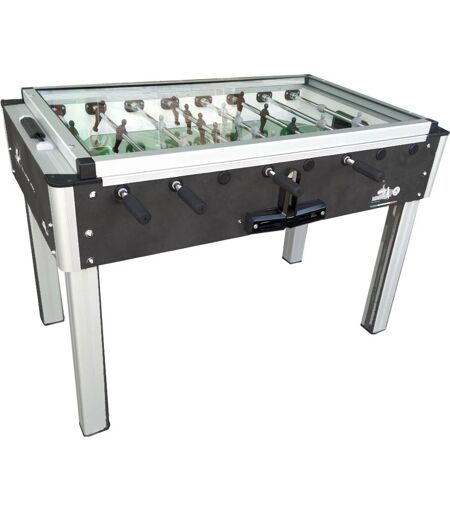 Roberto College Pro bordfodbold Dette Roberto College Pro fodboldspil er fremstillet i et enkelt design og bliver leveret med teleskopstænger i ekstra tyk og lækker kvalitet, indvendig måltragt og 180 grader roterende målmand, som giver optimal holdbarhed og øget spilleglæde. Kabinettet er af sort slidstærkt laminat, som nemt holdes rent og spillefladen er i glas, hvilket giver optimal boldkontrol, så du kan drible og tæmme bolde i fuld fart. Samtidigt sikrer glaspladen at spillefladen forbliver lige/jævn og ekstremt slidstærkt, så du kan spille mange turneringer fremover. Bordet har også en top glas plade og boldtrakt, som sikrer at boldene altid forbliver i bordet. Herudover sørger toppladen for at der heller ikke kommer snavs og skidt ned på spillefladen. Produkttype: Bordfodboldsspil Farve: Sort Kabinettykkelse: 29 mm Spilleflade (LxB): 111 x 70 cm Udvendige mål. Mål (LxBxH): 135 x 110 x 90 cm Vægt: 70 kg Kassens mål (LxBxH): 138 x 80 x 29 cm Der medfølger 8 fodbolde ...