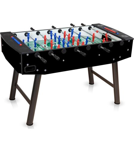San Paolo Bordfodboldspil Flot og robust bordfodboldspil i friske assorterede farver for mange timers underholdning. Bordet leveres med store runde ben, som giver bordet sin enorme stabilitet. Spillerne styres med de smarte teleskopstænger, som forsikrer et behageligt spil. Glasunderlaget giver et fantastisk gnidningsfrit spil, og med de påmalede linjer vil du have et stort overblik over spillet. Spillerne kan roteres 360 grader, og de to målmænd kan roteres 180 grader. Der medfølger 5 fodbolde. Farve: Sort Vægt: 62 kg Dimensioner: 148 cm x 75,5 cm x 89 cm ...
