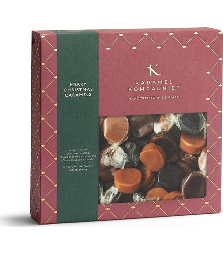 Julen smager lidt bedre med karameller fra Karamel Kompagniet. Merry Christmas Caramels er en stemningsfuld gaveæske med et festligt mix af klassiske, chokoladeovertrukne og let saltede karameller – håndlavet på Bornholm med kærlighed og respekt for det gode håndværk. Hver karamel er individuelt indpakket og ligger smukt i den juleinspirerede æske, der emmer af elegance og varme. Den perfekte gave til kollegaer, værter eller som sød selvforkælelse i december. Specifikationer: Indhold: 236 gram Karamel Kompagniet - Delikat karamel fra Bornholm Med engelske familietraditioner og en forædlet udgave af en hemmelig opskrift fra 1894, har Karamel Kompagniet siden 2004 produceret håndlavede karameller i Gudhjem og Rønne. ...