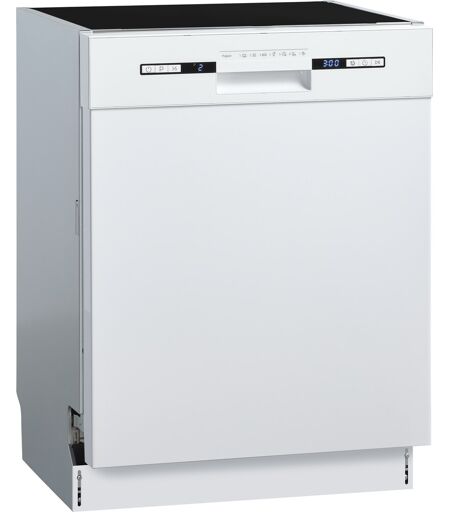 Scandomestic DWB1444WD Indbygningsopvaskemaskine Denne indbygningsopvaskemaskine fra Scandomestic har 7 programmer og et flot LED-display. Den er beregnet til 14 kuverter og har 3 stativer, justerbar øverste kurv med fuldt udtræk og lejer. Funktioner som Aqua stop, Halv opvask, Ekstra tørring, sat indikator for salt og afspændingsmiddel. Et svagt støjniveau på 44 dB(A) og mulighed for forsinket start 1-24 timer. Specifikationer: Produkttype: Opvaskemaskine Farve: Hvid Indbygning: Ja, underbygningsmodel Antal kuverter: 14 Antal programmer: 7 Antal kurve: 2 stk. AquaStop: Ja Antal fødder: 4 justerbare Energiklasse: D Størrelse (HxBxD): 81,5 x 59,8 x 57 cm Vægt: 44 kg. ...