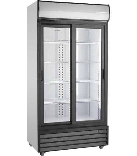 Scandomestic SD 1002 SLE Displaykøleskab, hvid SD 1002 SLE er et stort 2-dørsdisplay køleskab, med 764 netto liter kølerum. Leveres med 8 hvide, kraftige trådhylder med tråde som sikrer at alle typer glas, dåser og flasker står stabilt på hylderne. Skabet har 8 kraftige hjul, så det altid er muligt at flytte, også når det er fyldt op. Skabet har skydedøre med lås, så det er muligt at aflåse skabet. Dørene lukker automatisk hvilket altid minimerer temperaturstigninger. 2 vertikale energibesparende LED lys i front giver et godt lys og repræsenterer varerne flot. Skabet har Intelligent luftcirkulationssystem, som sikrer perfekt ventileret køling i hele skabet. SD 1002 SLE er elektronisk styret og har udvendigt, digitalt kontrolpanel, så det er nemt at justere og se temperaturen i skabet. Specifikationer: Produkttype: Displaykøleskab Farve: Hvid Volumen: 670 liter Lys: 2 vertikale LED’er Hylder: 8 stk. Lydniveau: 60 dB (A) Energiklasse: D Klimaklasse: T Tilslutning: 230V/50 (Volt/Hz) Dimensioner (H x B x D): 202,3 x 113 x 70 cm Vægt: 126 kg ...