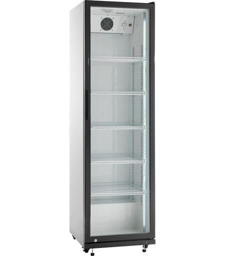 Scandomestic SD 430 E Displaykøleskab, hvid SD 430 E er et et-dørs display køleskab, med 360 netto liter kølerum. Leveres med 5 hvide, kraftige trådhylder med tråde som sikrer at alle typer glas, dåser og flasker står stabilt på hylderne. Skabet har 4 hjul, så det altid er muligt at flytte, også når det er fyldt op. Skabet har højre hængslet dør med lås, så det er muligt at aflåse skabet. Døren lukker automatisk hvilket altid minimerer temperaturstigninger. 2 vertikale energibesparende LED lys i front giver et godt lys og repræsenterer varerne flot. Skabet har Intelligent luftcirkulationssystem, som sikrer perfekt ventileret køling i hele skabet. SD 430 E er mekanisk styret og har indvendigt kontrolpanel øverst i skabet, så det er nemt at justere temperaturen i skabet. Specifikationer: Produkttype: Displaykøleskab Farve: Hvid Volumen: 360 liter Lys: 2 vertikale LED’er Hylder: 5 stk. Lydniveau: 50 dB (A) Energiklasse: D Klimaklasse: ST Tilslutning: 230V/50 (Volt/Hz) Dimensioner (H x B x D): 198 x 57,8 x 60,5 cm Vægt: 68,5 kg ...