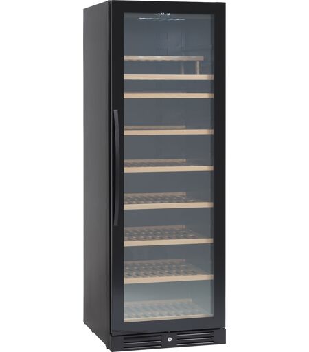 Scandomestic SV 111 B Vinkøleskab SV 111 B kan bruges til både indbygning og som fritstående vinskab og skabet har én zone. Skabet kan indstilles mellem 5°C – 18°C og kan rumme 126 flasker fordelt på 8 1/2 hylder i bøgetræ, heraf 7 1/2 udtrækshylder og 1 stationær. Et flot skab til opbevaring af dine flasker. Skabet har et tidløst design, hvor den sorte rammeløse glasdør og det indvendige lys giver skabet et eksklusivt udtryk. Højre hængslet dør med mulighed for dørvending, så det altid er fleksibelt at placere vinskabet i rummet. 1 horisontalt LED lys giver et godt lys og repræsenterer vinen flot. Skabet har intelligent luftcirkulationssystem, som sikrer perfekt ventileret, anti-vibrationskøling i hele skabet. SV 111 B har UV-beskyttelse, er elektronisk styret og har digitalt kontrolpanel, så det er nemt at se og justere temperaturen i skabet. Specifikationer: Produkttype: Vinkøleskab Farve: Sort Flaskekapacitet: 126 Temperaturzoner: 1 Temperatur: 5-18 °C Antal hylder: 8 Kapacitet: 426 liter Støjniveau: 39 dBA Strøm: 230V/50Hz Energiklasse: G Klimaklasse: N/ST Produktmål (HxBxD): 176,4 x 59,5 x 68 cm Vægt: 101 kg ...