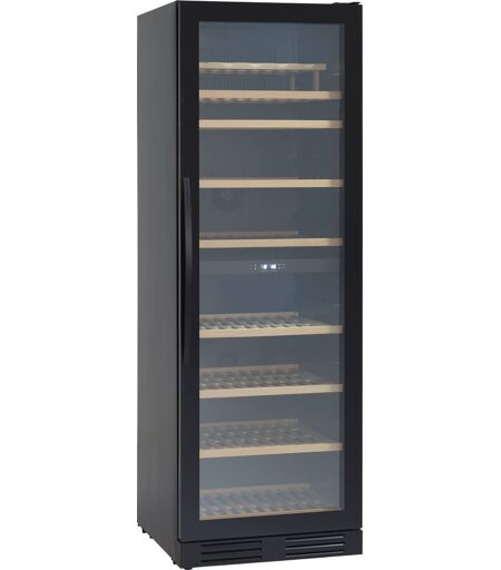 Scandomestic SV 124 B Vinkøleskab, sort SV 124 B kan bruges til både indbygning og som fritstående vinskab. Skabet har to zoner, kan indstilles mellem 5°C – 18°C uafhængigt af hinanden. Skabet kan rumme 126 flasker fordelt på 7 1/2 hylder i bøgetræ, heraf 6 udtrækshylder og 1 1/2 stationær. Et flot skab til opbevaring af dine flasker. Skabet har et tidløst design, hvor den sorte rammeløse glasdør og det indvendige lys giver skabet et eksklusivt udtryk. Højre hængslet dør med mulighed for dørvending, så det altid er fleksibelt at placere vinskabet i rummet. 2 horisontale LED lys giver et godt lys og repræsenterer vinen flot. Skabet har intelligent luftcirkulationssystem, som sikrer perfekt ventileret, anti-vibrationskøling i hele skabet. SV 124 B har UV-beskyttelse, er elektronisk styret og har digitalt kontrolpanel, så det er nemt at se og justere temperaturen i skabet. Specifikationer: Produkttype: Vinkøleskab Farve: Sort Flaskekapacitet: 126 Temperaturzoner: 2 Temperatur: 5-18 °C Antal hylder: 7 Kapacitet: 416 liter Støjniveau: 39 dBA Strøm: 230V/50Hz Energiklasse: G Klimaklasse: N/ST Produktmål (HxBxD): 176,4 x 59,5 x 68 cm Vægt: 94 kg ...
