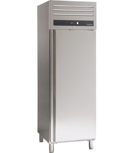Scandomestic GUF700X Lagerfryser GUF 700 X er et heldørs fryseskab på 461 liter, med praktisk integreret lås i døren og vendbar dør. Fryseskabet er både udvendigt og indvendigt produceret af den bedste stålkvalitet. Skabet er Ideelt til lager af frysevarer i enhver fødevareproducerende virksomhed med et storkøkken. Tilsvarende lager køleskab fås i samme design og dimensioner. Udvendigt digitalt kontrolpanel er placeret i en ergonomisk og brugervenlig position. Intuitiv digital kontrol gør det muligt at justere temperaturparametrene nemt og hurtigt, og displayet viser altid temperaturen ved drift.Fryseskabet har Epoxy-coatede trådhylder, med en maksimal kapacitet på op til 40 kg. Fryseskabet har Intelligent luftcirkulationssystem, som sikrer perfekt ventileret køling med dets innovative luftstrømsdesign. Integreret dørkontakt stopper ventilationen, når døren åbnes, hvilket sparer energi. Specifikationer: Produkttype: Lagerfryser Farve: Stål Køle- /fryseteknik: Ventileret Volume: 461 liter Hylder: 3 stk. epoxy-coatede trådhylder Lys: ingen lys Energiklasse: D Klimaklasse: 4 Tilslutning: 230V/50 (Volt/Hz) Dimensioner (H x B x D): 204 x 65,3 x 84,2 cm Vægt: 114 kg ...