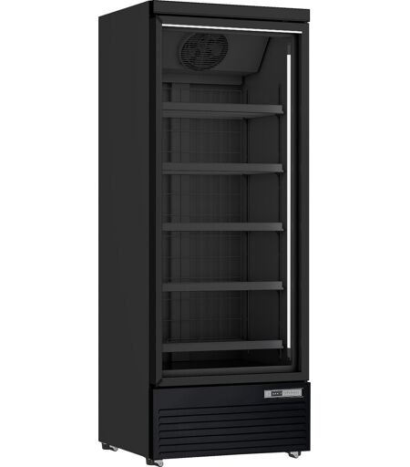 Scancool DC614BB Displaykøleskab DC614BB er et stort 1-dørs display køleskab, med 459 netto liter kølerum. Display køleren er både eminent til impulssalg og fremhæver produkter på bedste vis. Hylderne kan indstilles i mange niveauer så flasker, dåser og andet står stabilt og pænt repræsenteret i køleren. Display køleskabe benyttes i butikker, supermarkeder, cafeer, restauranter, pizzeriaer, tankstationer mv. og er meget velegnede til selvbetjening, hvilket giver god mulighed for at placere skabet strategisk for at skabe fokus og mersalg. Leveres med 5 sorte, kraftige tråd hylder som sikrer at alle typer glas, dåser og flasker står stabilt på hylderne. Skabet har 4 hjul, så det altid er muligt at flytte, også når det er fyldt op. Skabet har højre hængslet dør med lås som lukker automatisk hvilket altid minimerer temperaturstigninger. 2 vertikale energibesparende LED lys i front og 1 horisontalt LED lys giver et godt lys og repræsenterer varerne flot. Skabet har Intelligent luftcirkulationssystem, som sikrer perfekt ventileret køling i hele skabet. SC614BB er elektronisk styret og har udvendigt digitalt kontrolpanel, så det er nemt at se og justere temperaturen i skabet. Specifikationer: Produkttype: Displaykøleskab Farve: Sort Volumen: 614 liter Hylder: 5 stk. Lydniveau: 58 dB (A) Energiklasse: B Klimaklasse: 3 Dimensioner (H x B x D): 200,3 x 75 x 71 cm Vægt: 130 kg ...