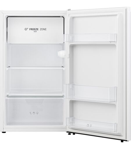 Scandomestic SKB82WE Køle-/fryseskab Lille praktisk køleskab med 75L kølekapacitet, og 7L integreret fryserum. Skabet kan stå frit så top pladen på skabet giver en ekstra bordplads lige ved hånden. Køleskabet er udstyret med et vertikal energibesparende LED belysning som giver et godt overblik og kommer med en stor transparent grønsagsskuffe som giver god plads til frugt og grønt. Den transparente front viser hvad skuffen gemmer på og kan dermed medvirke til mindre madspild. Specifikationer: Produkttype: Køle-/fryseskab Farve: Hvid Volumen, køleskab: 75 liter Volumen, fryser: 7 liter Hylder: 2 Lydniveau: 38 dB (A) Energiklasse: E Klimaklasse: N/ST Tilslutning: 220V/50 (Volt/Hz) Dimensioner (H x B x D): 84,5 x 47,5 x 44,8 cm Vægt: 24 kg ...