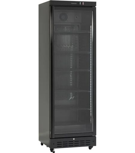 Scandomestic DC389BD - Displaykøleskab Display køleren er både eminent til impulssalg og fremhæver produkter på bedste vis. Hylderne kan indstilles i mange niveauer så flasker, dåser og andet står stabilt og pænt repræsenteret i køleren. Display køleskabe benyttes i butikker, supermarkeder, cafeer, restauranter, pizzeriaer, tankstationer mv. og er meget velegnede til selvbetjening, hvilket giver god mulighed for at placere skabet strategisk for at skabe fokus og mersalg. Sort kabinet leveres med 5 sorte, kraftige coatede trådhylder som sikrer at alle typer glas, dåser og flasker står stabilt på hylderne. Skabet har 4 kraftige hjul heraf 2 med bremser. Med hjul på skabet er det altid muligt at flytte skabet, også når det er fyldt op. Skabet har højre hængslet dør med lås, men kan vendes så det bliver venstre hængt. Dermed er det fleksibelt og nemt at placere køleskabet i de fleste rum. Døren har lås så skabet kan aflåses. Selvlukkende glasdør med langt håndtag, hvilket altid minimerer temperaturstigninger fordi døren lukker automatisk. 2 vertikale energibesparende LED lys i front giver et godt lys og repræsenterer varerne flot. Skabet har luftcirkulationssystem, som sikrer ventileret køling i hele skabet. DC389BD er mekanisk styret og det er nemt at justere temperaturen inde i skabet. Branding er en virksomheds særlige profil, og essensen i branding er at få virksomheder og deres produkter til at skille sig ud fra mængden og fange forbrugernes opmærksomhed.DC389BD er yderst velegnet til branding på siderne og kan, efter ønske dekoreres i dit design, så der opnås ekstra synlighed omkring brandet. Scandomestic har mange års erfaring i dekorering af kommercielle produkter på køl og frys og kan hjælpe med branding af produkter efter dit ønske. Specifikationer: Produktmål, HxBxD, mm: 1886 x 600 x 570 Bruttovolume, ltr: 360 Klimaklasse: ST Luftfugtighedsområde (%RH): 65 Lydniveau: 60 dB(A) Brand: Scancool Selvlukkende glasdør med langt håndtag og lås 5 justerbare coatede trådhylder - ABS innerliner 2 lodrette energibesparende LED-lys 4 stærke store hjul, 2 med lås Blæserassisteret køling Vendbar dør med lås Fås også med hvidt kabinet og interiør ...