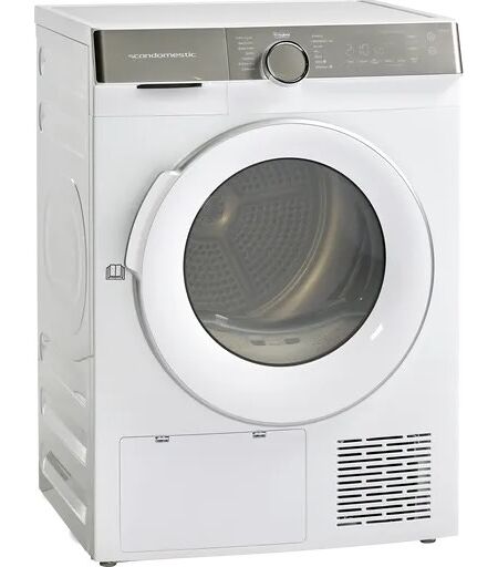 Scandomestic TDH8WA3 - Tørretumbler Elektronisk kondenstørretumbler med varmepumpe teknologi og energiklasse A+++. Med en kapacitet på op til 8 kg., er maskinen rummelig og ideel for større familier. TDH8WA3 har i alt 14 programmer heraf 12 elektroniske og 2 programmer med mulighed for tidsstyring. Ved brug af de 12 elektroniske programmer, kører maskinen aldrig længere tid end nødvendigt, hvilket sparer både tid og strøm. Genopfriskningsprogrammet frisker tøjet op med koldt luft, og er ideel til at fjerne lugt i tøjet. Fnugfilteret sidder i lugens åbning og er derfor let tilgængeligt, når det skal tømmes. Med det store LCD display er det muligt at anvende udskudt start funktion, hermed opnås maksimal fleksibilitet så maskinen kan programmeres til at starte når det ønskes. Displayet viser også når det er tid til tømning af vandbeholder samt fnugfilter. Displayet viser resttiden, men har også en akustisk alarm, så tøjet kan tages ud når tørre cyklussen er færdig. Børnesikring sikrer der ikke kan ændres på programmeringen. Den indvendige tromlebelysning giver altid et godt lys omkring lugeåbningen. Lyset i tørretumbleren tændes automatisk, når du åbner lågen og gør det nemmere at fylde og tømme maskinen. Maskinen er udført i et flot, moderne design i hvid og silver og matcher med vaskemaskinen WMF3408WA. Displayet viser tekst med hvidt Specifikationer: Produktmål, HxBxD, mm: 845 x 595 x 600 Nominel kapacitet, kg: 8 Brand: Scandomestic Elektronisk tumbler med 14 programmer og varmepumpe teknologi Hvid LED-display med forsinket start Indvendigt lys Børnesikring Uld og delikat program Kan stables med WMF1408WA, hvis der anvendes stablesæt (medfølger ikke) ...