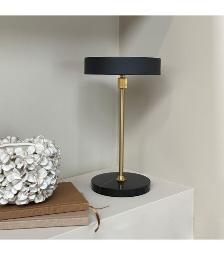 Fleksibel belysning med eksklusive detaljer fra Dyberg Larsen Moonlight bordlampe med indbygget LED og touch-teknologi har et harmonisk og elegant design. Den ledningsfrie lampe har 3 behagelige og blændfri lysstyrker som let kan styres via touch knappen på lampeskærmen top. Den bevægelige skærm som kan vippes og tilpasses efter behov og ønske, er fremstillet i sort metal, mens lampens base består af massivt sort marmor. Et klassisk element kommer til udtryk gennem messingens glød og sammen skaber de kontrasterende materialer et velbalanceret, robust og alsidigt lampedesign, velegnet til hjemmets mange rum og miljøer. Lampen kan oplades med det medfølgende USB-C kabel. Farve: Sort/sort marmor/messing Materiale: Metal/marmor Dimensioner (HxØ): 28 x 16 cm Genopladelig Til indendørsbrug Fatning: Integreret LED IP Klasse: 20 Lumen: Max. 115 Kelvin: 3000 ...