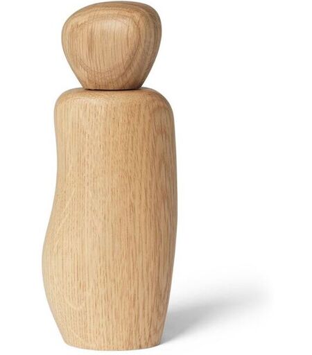 Ferm Living Pebble Grinder - Eg Med sine bløde kurver og skulpturelle detaljer giver Pebble Grinder dig mulighed for at krydre dine retter med stil. Den unikke træform, fremstillet af FSC-certificeret eg med en karboniseret overflade, er inspireret af varder – menneskeskabte stensætninger, ofte rejst til mindeformål. Placer Pebble Grinder på dit køkkenbord eller spisebord for at tilføje et kunstnerisk og skulpturelt element til din indretning. Designer: Ferm Living Materialer: FSC certificeret massiv eg. Lakeret Mål: H: 18,8 cm B: 7,6 cm Farve: Egetræ Bemærk: På grund af den endelige polering for at opnå den organiske form, kan der forekomme variationer i størrelse og træfarve. Den forkullede duft af træet vil aftage med tiden. ...
