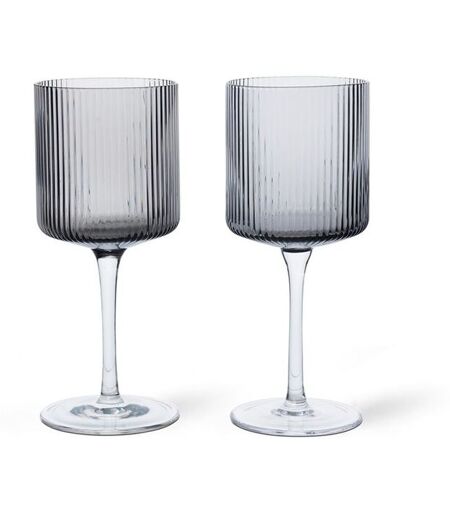 Ferm Living Ripple White Wine Glasses H: 16,8 cm - Set of 2 - Smoked Grey