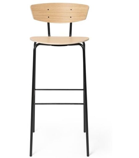Ferm Living Herman Bar Chair H: 96 cm - White Oiled Oak Så er der et nyt medlem af Herman-stoleserien fra Ferm Living: den nye FSC-certificerede Bar Chair. Den bevarer de slanke linjer og komforten i det buede ryglæn og fremstår som en klassisk stol i krydsfeltet mellem æstetik og funktion. Denne udgave er en høj version af barstolen, og den har fodstøtte for ekstra siddekomfort - Herman Bar Chair er dermed perfekt til stunder i godt selskab i køkkenet eller ved baren. Bemærk: Dette er en barstol til indendørs brug, og den leveres samlet. Designer: Ferm Living Mål: B: 40,5 cm H: 96 cm D: 43 cm Sædehøjde: 76 cm Materiale: Sæde og ryglæn: Olieret egefiner Ste: Pulverlakeret metal Farve: Lys eg og sort stel. Plejeanvisning: Tørres af med en fugtig klud. ...