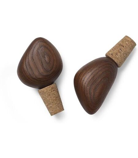 Ferm Living Cairn Wine Stoppers Set of 2 H: 9,6 cm - Dark Brown/Ash