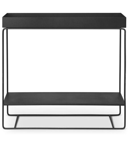 Ferm Living Plant Box Two-Tier 25x80 cm - Black Smart Konsolbord der er inspireret fra Ferm Livings populære Plant Box. Samme linjer som man kender, men i en ny udformning med 2 hylder hvor den ene er dybere for at tingene står mere fast. Den øverste bakke er ideel til opbevaring som planter, bøger og foto rammer, men kan også anvendes som barbord. Den slanke silhuet gør at det vil passe ind i de fleste rum som et indendørs plantestativ eller opbevaring på altanen. Tip: Coatingen er stærk nok til at du kan bruge den til udendørs. Materiale: Pulverlakeret metal Mål: B: 25 cm H: 75 cm D: 80 cm ...
