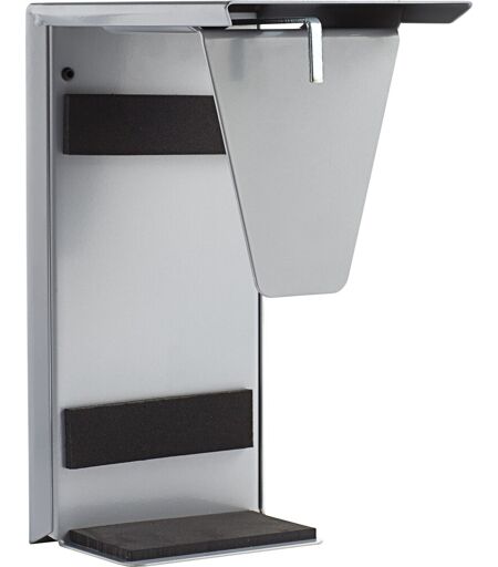 Enkelt og stabilt ophæng til computer Praktisk, elegant og sikker CPU-holder i en god kvalitet til en god pris. Monteres på undersiden af hæve/sænkebordet, så der kablerne holdes sikre. Med CPU-ophæng kan du nemt komme under computeren, når kontoret skal rengøres. Specifikationer: Højdejusterbar: 20-46 cm Dybdejusterbar: 6-19 cm Farve: Aluminium Max vægt: 20 kg ...