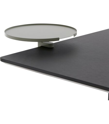 APTO Rundbord APTO rundbordene findes i 2 størrelser og giver dig mulighed at skabe et personligt arbejdsrum. Bordet stjæler ikke unødig plads fra skrivebordets overflade og er lavet med en en mindre kant som skaber sikker opbevaring af tingene placeret på bordet. Bordet "svæver" 5,4 cm over skrivebordets overflade. Hele APTO-serien er bygget op omkring de mulitfunktionelle og design-beskyttede mulitklemmer. APTO kollektionen er desginet til at udvide og opgradere arbejdsmiljøet, og kollektionen byder en række innovative og tidsløse designs. Kollektionen er designet af det anerkendte deisgnfirma Hans Thyge & Co. i samarbejde med producenten APTO Plus. APTO kollektionen består af an række accessories til skrivebordet. Hele kollektionen er bygget op omkring multiklemmerne, som giver mulighed for at tilpasse, forandre og personliggøre sin arbejdsplads. Klemmen kan let flyttes fra en overflade til en anden og alle produkter i kollektionen kan med lethed isættes nemt, stabilt og lydløst. Klemmerne kan monteres på alle horisontale overflader, så længe den fasede kant ikke overstiger 27 mm. 1 stk APTO Multiklemme i samme farve medfølger! Specifikationer: Farve: Danish Dusty Green Mål: Ø28 cm Antal beslag: 1 stk APTO klemme (Medfølger) ...
