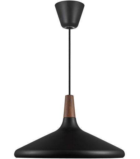 Design For The People Nori 39 Pendel Ø: 39 cm - Sort Smuk pendel fra Design For The People, Nori serien. Lampen har et smukt og enkelt ydre, der gør, at lampen vil passer ind i både de fleste rum og indretninger. De bløde, organiske former giver lampen en lethed der gør, at den ikke kommer til at overdøve eller stjæle for meget opmærksomhed i rummet, men blot tilføjer en smuk og dekorativ belysning. Brug lampen over spisebordet, i køkkenet eller i entréen. Lampen er både smuk alene eller sammen med flere af samme lampe, du kan dog også bruge den sammen med andre lamper fra samme serie og skabe en smuk sammenhæng i din indretning. OBS: miljøbillederne viser nødvendigvis ikke lampen i den rigtige farve, men dens udformning og mulige anvendelse. Lampen er til indendørs brug Designer: Bjørn + Balle Mål: H: 22 cm Ø: 39 cm Ledning: 3 meter (sort, stof) Materialer: Metal Valnød Tekniske specifikationer: E27 max 40W (lyskilde medfølger ikke) Lampen er dæmp bar med kompatibel pære (medfølger ikke) Spænding (volt) 230V IP20 Klasse 2 (Dobbelt isoleret) ...