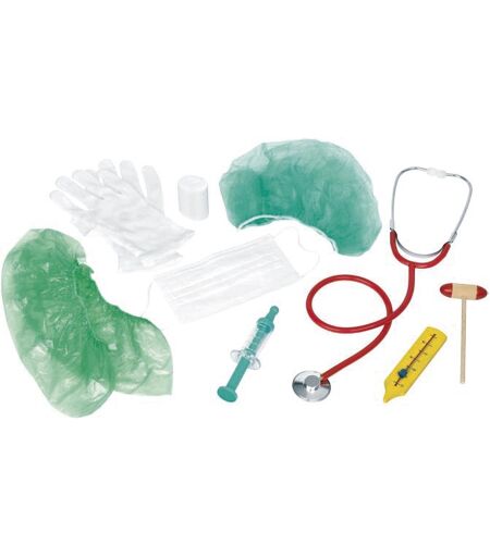 Mumins medicinska kit med ett riktigt stetoskop. I den söta läkare väskan är ett riktigt Stetoskop där barnet kan höra faderns och moderns hjärtslag. Medicinskt kit innehåller också hårnät, mun mask, bomullshandskar, bandage, kompresser, termometer trä sprutan i plast och en hammare, så att du kan se dina vänners reflexer vid knät. Lämplig för barn från 4 år. Lådan mäter 22,5x16x10 cm ...