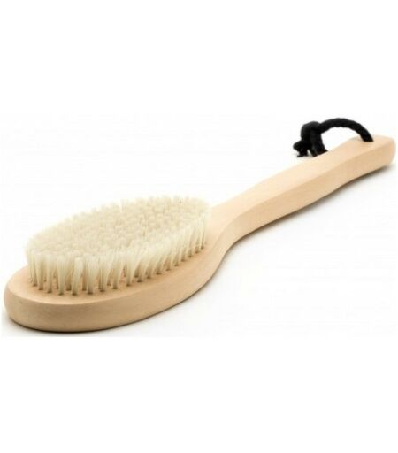 Badeanstalten Body og Bath Brush er både god at bruge våd sammen med sæbe, eller til en tørbørstning. Børsten fjerner døde hudceller, og renser i porerne. Det lange skaft betyder, at man nemt kan nå hele kroppen rundt, så ingen steder bliver glemt. Børsten giver en flot glød til huden, og efterlader huden helt ren og blød. Uanset om den bruges våd eller tør, er denne børste perfekt, og er hverken for blød eller for hård. Fordele: Krops- og badebørste Kan bruges både våd og tør Fjerner døde hudceller Giver en blød og frisk hud Anvendelse: Brug børsten på tør hud Gør børsten våd, og brug den sammen med sæbe ...