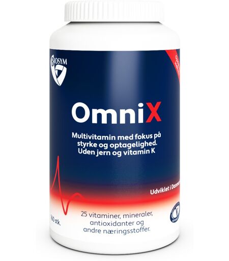 Biosym Omnix Multivitamin uden vitamin K og jern, med fokus på styrke og optagelighed. ...