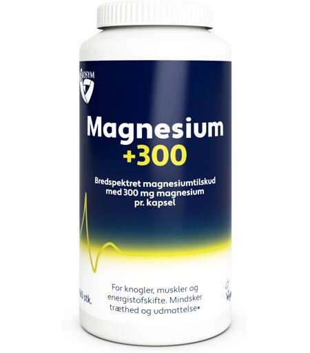 Biosym Magnesium +300 er et bredspektret magnesiumtilskud med 300 mg magnesium pr. kapsel. Magnesium +300 ...