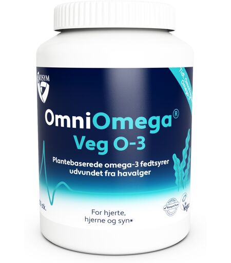 Algeolien i OmniOmega Veg O-3 er en direkte kilde til de essentielle langkædede omega-3 fedtsyrer EPA og DHA. EPA og DHA bidrager til hjertets normale funktion. DHA hjælper også med at opretholde normal hjernefunktion og normalt syn*. Olien ...