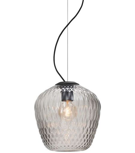 &Tradition Blown SW3 - Silver lustre Designer: Samuel Wilkinson, 2013 Den unikke mundblæste pendel Blown af Samuel Wilkinson er den første lampe til &Tradition. Pendlen var tænkt som en udforskning af refleksioner, fordrejninger og brydninger af en lyskilde, når lyset bliver omgivet af et mønsteret glas. Lampen reflekterer derfor lyset rundt i rummet smukt og elegant, samt gør mønsteret belysningen blød og unik. Blown er smuk som et enkeltstående element, men fungerer ligeså godt i klynger eller i rækkefølge. Mål: Ø: 28 cm H: 28 cm Materiale: Glas Metal 4 meter ledning Lyskilde: E27, maks 100 Watt. (Medfølger ikke) ...