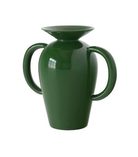 &Tradition Momento Vase JH41 H: 30 cm - Emerald De skulpturelle former på hver Momento Vase kan ofte identificeres i Hayons malerier, de to særskilte værker udviser en stærk og legende grafisk identitet. Begge lige ikoniske i formen, JH40 kommer i en blød creme, mens JH41 fås i en fed smaragdgrøn – to nuancer valgt for deres alsidighed og forhold til floraens friske farver. Det slanke halsdesign på Momento-vaserne tjener et formål ud over æstetik alene, og kræver, at brugerne er selektive, når de placerer blomster i kammeret, hvilket tilskynder til et øjebliks opmærksomhed, mens de konstruerer en buket. Design: Jaime Hayon Materiale: Keramik Mål: H: 27 cm B: 12 cm D: 15,1 cm ...