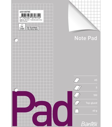 Bantex Blok A5 Toplimet Hullet Kvadreret