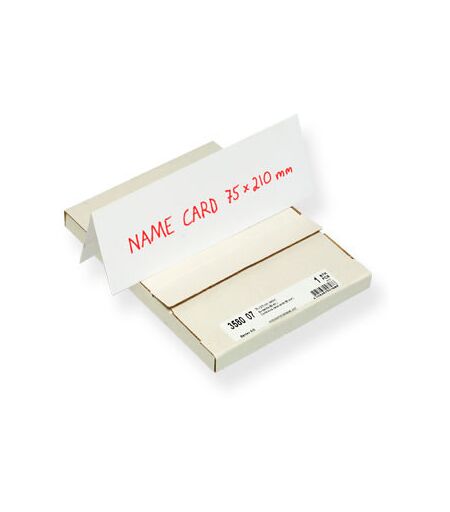 Bordnavneskilte i falset karton pakket i 50 stk. Egenskaber Bredde 75 X 210 mm. Kopi, laser og inkjet230 g Producentens varenummer: 358007 ...