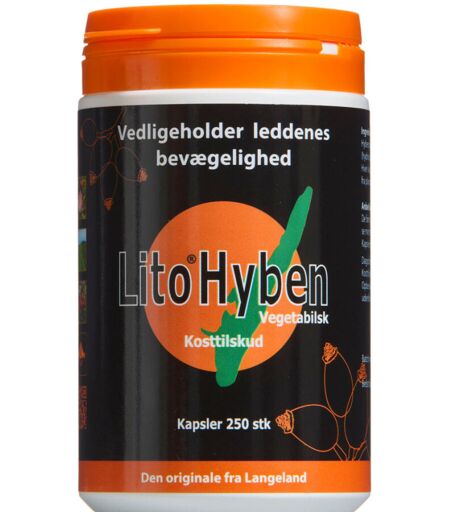 LitoHyben 500 mg vedligeholder leddenes bevægelighed. Produceret på Langeland af Erik Farmers Hyben Vital ApS efter en patenteret tørrings-/fremstillingsmetode. Til Lito Hyben Vegetabilsk bruges der udelukkende specielt udvalgte hyben (Rosa Canina L), bl.a. Erik Farmers Hyben Vital ApS' egne Lito bær. Lito Hyben pulver er et 100% naturprodukt og er resultat af mange års dansk / skandinavisk / international forskning og udvikling. Ved en nænsom omgang med råvarerne i en patenteret fremstillingsmetode, er det lykkedes at udvikle et standardiseret og unikt produkt indeholdende skal og kerner. Kapslen er lavet HPMC (HydroxyPropylMethylCellulose). Produktet er vegetabilsk. Dispenseringsform Kapsler ...