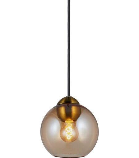 Smuk pendel med et moderne og æstetisk udtryk Bubbles lampen byder på høj kvalitet og tidløs æstetik. Den tilsyneladende enkle form er faktisk et studie i geometri, hvor de harmoniske proportioner er afbalanceret mellem de 3 sfærer, der udgør lampen. De tre sfærer, som lampen består af, ligner bobler og deraf har den fået navnet ”Bubbles”.Lampens farvede glas er transparant, hvilket giver rig mulighed for at kombinere den med dekorative lyskilder for et endnu mere unikt udtryk. Det unikke og elegante design vil bringe et moderne twist til enhver indretning i mødelokalet, hyggekrogen, over spisebordet mv. Specifikationer: Farve: Ravfarvet - Messing Mål (ØxH): 14 x 14 cm Materiale: Glas og metal Vægt: 0,8 kg Fatning: G9 Maks. watt: 28W Lyskilde inkluderet: Nej IP-klassificering: IP20 Stofledning: Sort - 250 cm ...