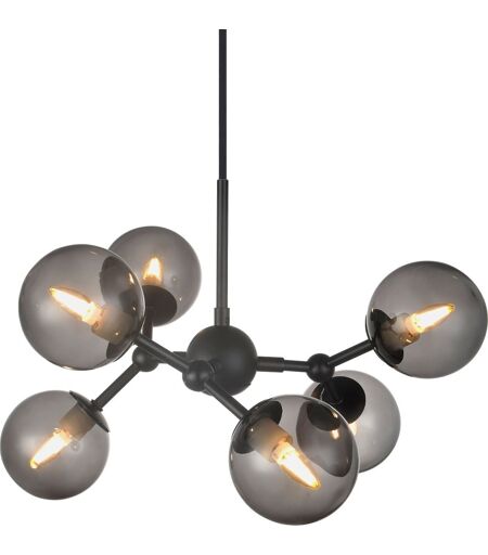 Halo Design Atom Pendel Med 6 Arme, Sort/smoke Glas