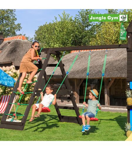 Jungle Gym klatremodul 220, sort Gør legetårnet endnu sjovere med Jungle Gym 2-Climb Modul 220 – et spændende klatremodul, der giver børn mulighed for at udfordre deres balance, styrke og motorik. Med en robust "A-ramme" kan børnene vælge at klatre over rebet, kravle under eller lege på toppen. Dette modul skaber en helt ny verden af leg, hvor børnene kan bevæge sig og udvikle deres klatrefærdigheder på en sjov og sikker måde. Denne udgave er grundmalet i en elegant sort farve, der passer flot ind i haven. Træet er tørret ned, inden det behandles med vandbaseret træbeskyttelse, hvilket sikrer en flot og holdbar finish. Klatremodulet er designet til nem montering og passer til en lang række Jungle Gym legetårne. Det leveres som en komplet saml-selv-pakke i færdigsavede trælængder og er CE-mærket samt testet efter gældende sikkerhedsstandarder. Specifikationer: Materiale: Fyrretræ, grundmalet sort Dimensioner (HxBxD): 215 x 287 x 238 cm Stolper: 68 x 68 / 88 x 88 mm Reglar: 34 x 58 mm Brædder: 16 x 95 mm Sikkerhedsafstand tårn: 200 cm Areal ekskl. sikkerhedsareal Climb Module: 215 x 287 x 238 cm Maks. brugere: 4 personer Maks. brugervægt pr. person: 50 kg Vægt: 77,5 kg Inkluderet udstyr: Klatrenet, klatrestativer, beslag, skruer Kompatible legetårne: Castle, Club, Home, Hut, Cottage, Cubby, Shelter, Cabin, Lodge, Villa, Chalet, Fort, Mansion, Farm, Barn, Palace, Playhouse L, Playhouse XL, Crazy Playhouse CXL Godkendelser: CE-mærket, testet iht. EN 71-1, 2, 3, 8 & 9 PEFC-certificeret ...