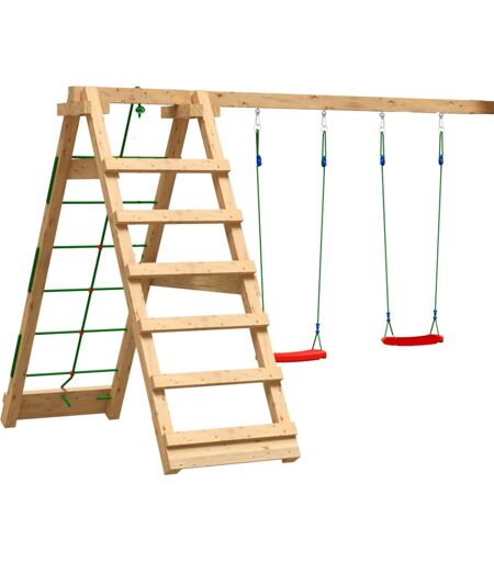 Jungle Gym klatremodul 220 Jungle Gym 2-Climb Modul 220 er en spændende udvidelse til ethvert legetårn, der giver børn mulighed for at klatre, kravle og lege i flere niveauer. Med en robust "A-ramme" kan børnene klatre over rebet, kravle under konstruktionen eller lege på toppen. Modulet tilbyder en alsidig legeoplevelse, der stimulerer motorik, balance og koordination. Dette klatremodul passer til en bred vifte af Jungle Gym legetårne og giver mulighed for at udvide legepladsen med flere udfordringer. Det er fremstillet af trykimprægneret træ, der sikrer en lang levetid og høj stabilitet. Jungle Gym 2-Climb Modul 220 leveres som en komplet saml-selv-pakke i færdigsavede trælængder og er CE-mærket samt testet efter gældende sikkerhedsstandarder. Specifikationer: Materiale: Trykimprægneret træ Dimensioner (HxBxD): 215 x 287 x 238 cm Stolper: 68 x 68 / 88 x 88 mm Reglar: 34 x 58 mm Brædder: 16 x 95 mm Sikkerhedsafstand tårn: 200 cm Areal ekskl. sikkerhedsareal Climb Module: 215 x 287 x 238 cm Maks. brugere: 4 personer Maks. brugervægt pr. person: 50 kg Vægt: 78,5 kg Inkluderet udstyr: Klatrenet, klatrestativer, beslag, skruer Kompatible legetårne: Palace, Barn, Farm, Mansion, Fort, Chalet, Villa, Lodge, Cabin, Shelter, Cubby, Cottage, House, Hut, Home, Casa, Club, Castle, Tower, Legehustårn L, Legehustårn XL, Crazy Playhouse Godkendelser: CE-mærket, testet iht. EN 71-1, 2, 3, 8 & 9 PEFC-certificeret ...