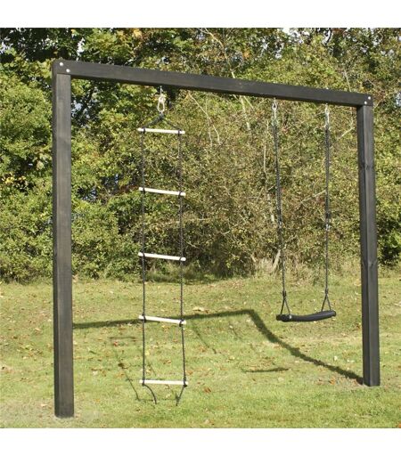 NORDIC PLAY Arthur gyngestativ m/gynge & reb, sort Arthur gyngestativet fra NORDIC PLAY kombinerer sjov gyngetur og udfordrende klatring i ét sæt. Med en sort gynge og en rebstige er der rig mulighed for timevis af aktiv leg, der styrker både balance og motorik. Det elegante gyngestativ i sort grundmalet FSC-certificeret fyrretræ passer smukt ind i haven og skaber et trygt sted til kreativ udfoldelse. Stativet nedgraves og støbes i beton for optimal stabilitet – alt nødvendigt tilbehør medfølger for nem opsætning. Specifikationer: Farve: Sort Materiale: FSC-certificeret, grundmalet fyrretræ Anbefalet alder: 3-10 år Overligger: 9 x 9 x 240 cm Ben: 9 x 9 x 300 cm Maks. belastning (gynge og rebstige): 50 kg pr. enhed Gyngesæde: (HxBxD): 4 x 42 x 14,5 cm Rebstige: (HxBxD): 172 x 30 x 2,5 cm Mål (HxBxD): 210 x 240 x 9 cm Vægt: 143 kg Inkluderet: 1x overligger, 2x ben, 1x sort gyngesæde med reb, 1x rebstige med beslag, 2x sæt gyngebeslag, 1x sæt jordanker til rebstige, 4x poser støbebeton ...