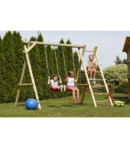 Byg dit eget gyngestativ fra Nordic Play Byg dit eget gyngestativ med dette komplette gør-det-selv-sæt fra Nordic Play. Sættet indeholder alt træ og montagevejledning, så du nemt kan samle stativet og tilpasse det med dine egne beslag og gynger. Den integrerede platform giver mulighed for at montere en 220 cm rutsjebane for endnu flere legemuligheder. Træet er trykimprægneret fyr og leveres i færdigsavede længder – klar til montering i haven. OBS: Leveres uden gynger, beslag og rutsjebane. Specifikationer: Materiale: Trykimprægneret fyrretræ Overligger: Ø 10 x 240 cm Ben: Ø 8 x 240 cm Inkluderet: Træmateriale og montagevejledning Kompatibel med: 220 cm rutsjebane Mål (HxBxD): 240 x 306 x 310 cm Vægt: 65 kg ...