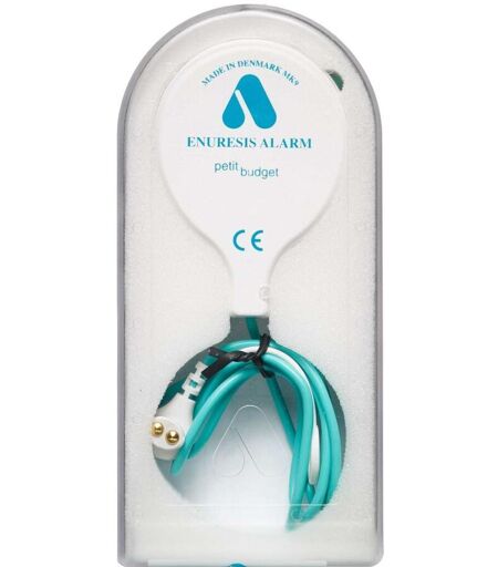 Enuresis-Alarm (vådliggeralarm) er et apparat, som anvendes til børn, der ikke selv har kontrol over deres blærefunktion. Apparatet består af en alarmenhed, som via en ledning forbindes til føleren. Ved blot få dråber urin aktiveres alarmen og vækker barnet, som så skal gå på toilettet og tømme blæren. På denne måde optrænes de reflekser, som barnet ikke har fået udviklet i den tidlige barndom. Børnene bliver bevidste om, at de selv har kontrollen over deres blærefunktion. Bemærkning Sov i nærheden af barnet, så alarmen kan høres af en voksen. Hvis barnet ikke hører alarmen efter 14 dage, anbefales det, at en voksen sover i samme rum.Barnet skal føle sig tryg ved brug af apparatet, og man bør ikke hindre sit barn i at drikke vand inden sengetid.Efter 21 tørre nætter kan man prøve at fjerne apparatet.Det er vigtigt at rengøre føleren i sulfo flere gange om ugen. ...
