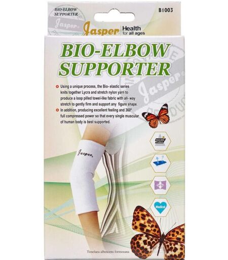 Jasper Bio albuebandage small måler 23 - 25 cm, og er lavet af ægyptisk bomuld kombineret med Lycra. Bandagen er uden sømme, og er blød og varm. Jasper Bio albuebandage er konstrueret med tredimensionel pasform, så den følger med ved alle kroppens bevægelser og retter sig ud igen uden at lave folder. Kan bl.a. anvendes ved rheumatiske lidelser, dvs. smertetilstande i muskler, sener, bindevæv og led. Anvendelse: Anvendes ved behov. ...